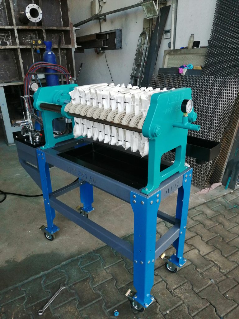 250’lik filtre pres makineleri; genellikle laboratuvarlarda test presi olarak, çok küçük ölçekli imalatlarda veya miktarı az fakat değeri yüksek ürünlerin filtrasyonunda tercih edilmektedir.